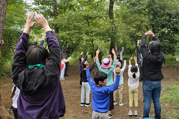 10月の自然塾は29名の児童の参加がありました。いつもの通り、ラジオ体操で始まりました。
