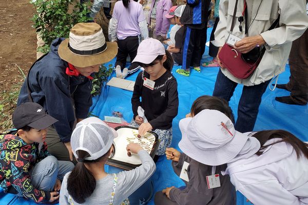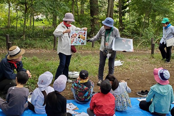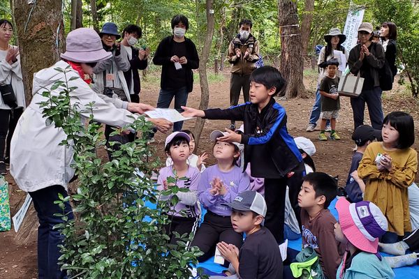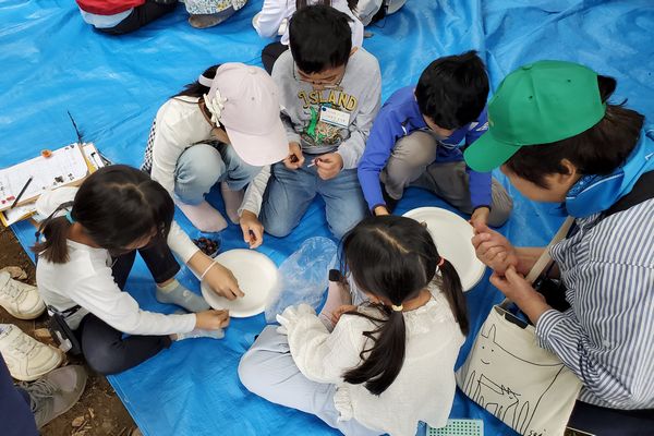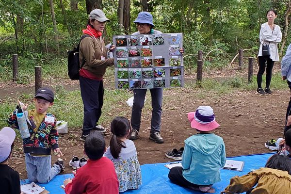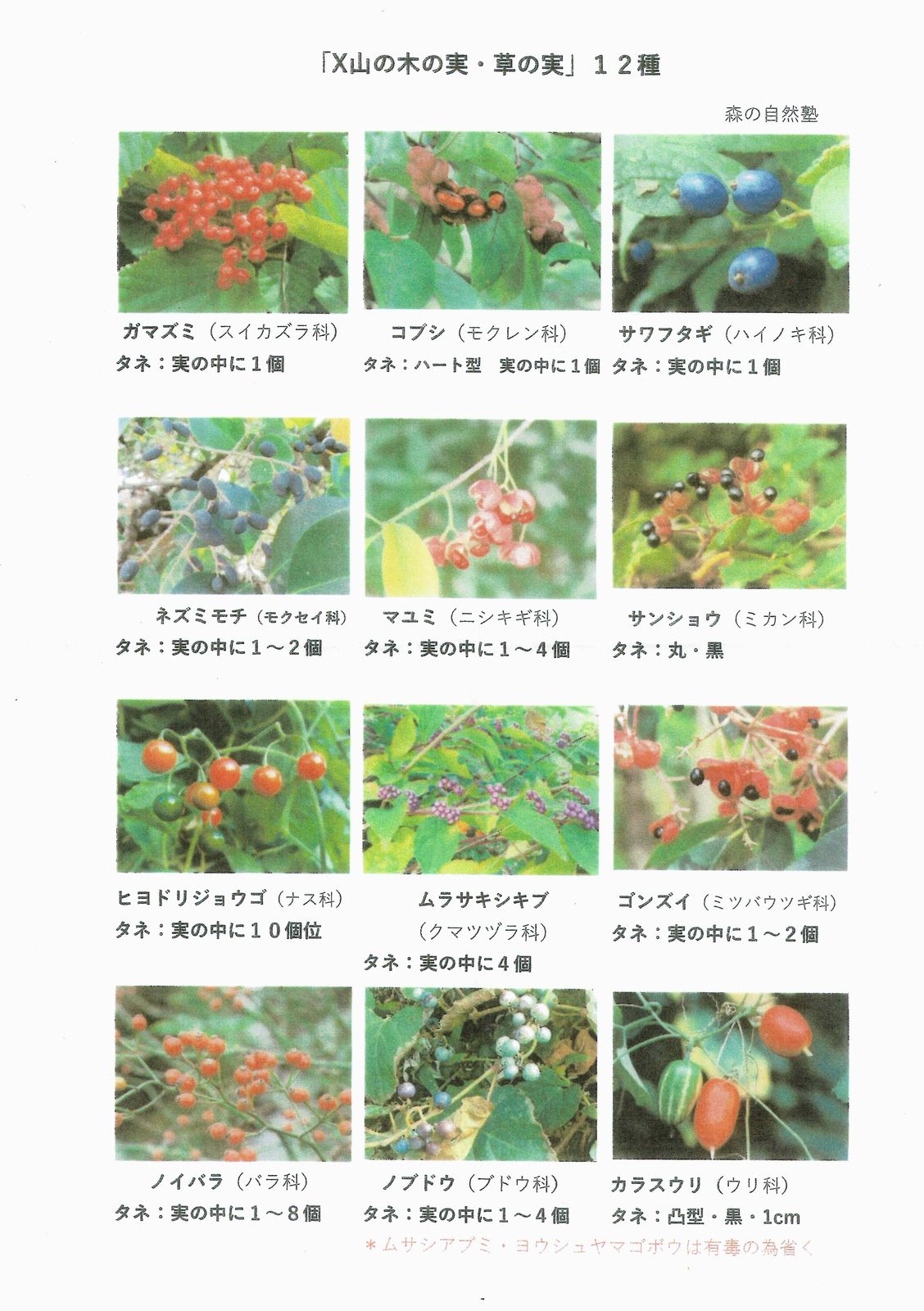 木の実を見つけたら、何の実がみんなで確認します。エックス山にはこんな木の実・草の実が見られます。
