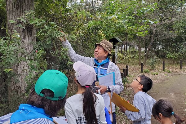 みんなで草木の実さがしに出かけました。初めに、毎月おこなっているムラサキシキブの定点観察で季節の変化を確認します。