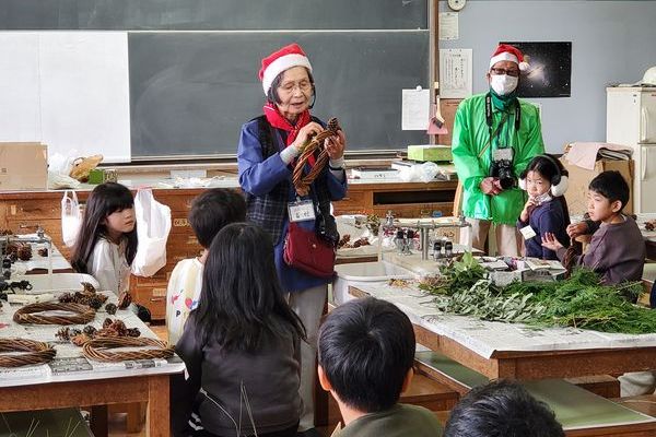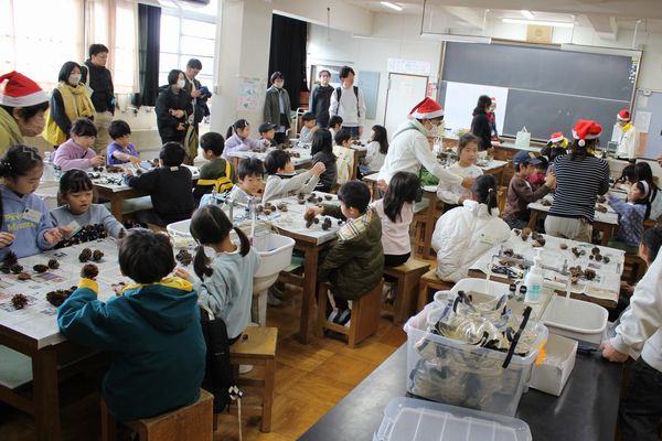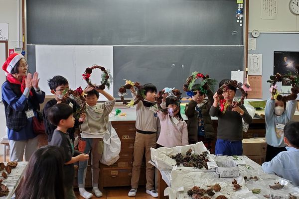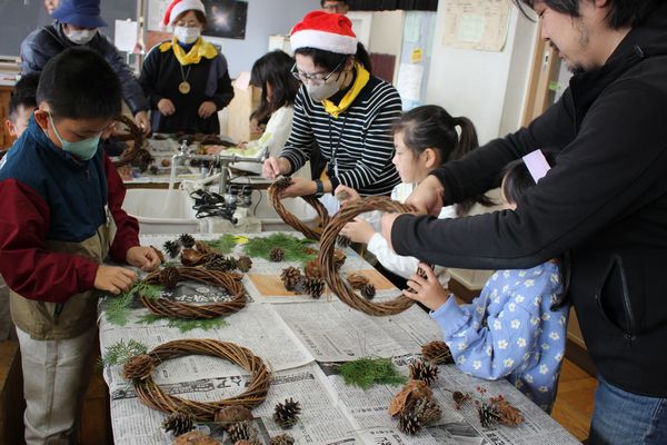 11月の森の自然塾は、例年人気のクリスマスリース作りです。 今月からの3回は、第九小学校をお借りして、室内での活動です。