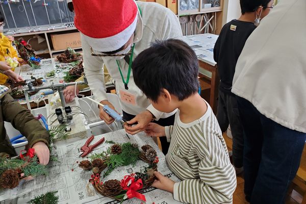 教室を移動して、さあお待ちかね。後半のプログラムは、クリスマスリース作りです。