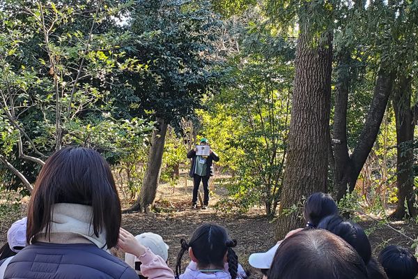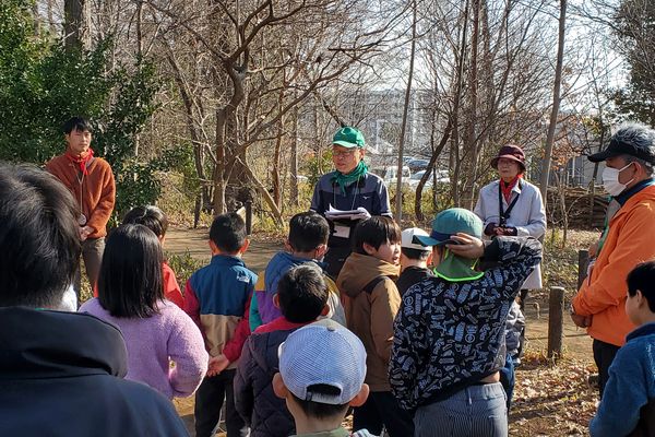 姿見の池緑地に着きました。まず、野鳥観察のマナーと姿見の池緑地で見られる野鳥の見分け方を詳しく学びました。