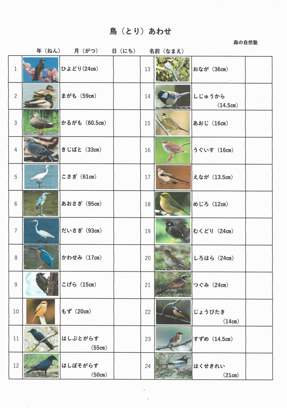 観察後の鳥合わせで、確認シートを使って見つけた鳥の確認をしました。珍しいアオゲラなど、18種類になりました。子供たちの目は素晴らしいです。