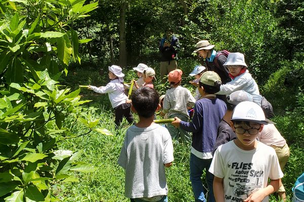 人は古来より、様々な用途で、植物を利用してきました。エックス山の植物の中から、その幾つかを選び、クスノキと樟脳、ミントと歯磨き粉など、現物と加工製品との匂い比べをしました。ドクダミや笹のお茶も味わいました。