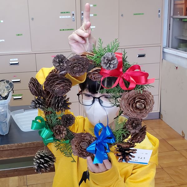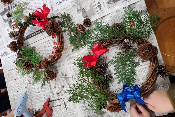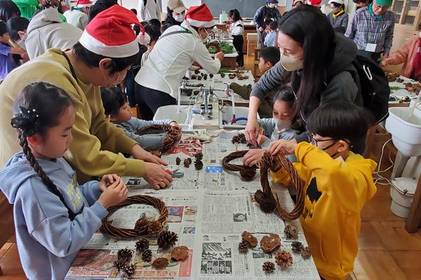 教室を移動して、さあお待ちかね。後半のプログラムは、クリスマスリース作りです。
